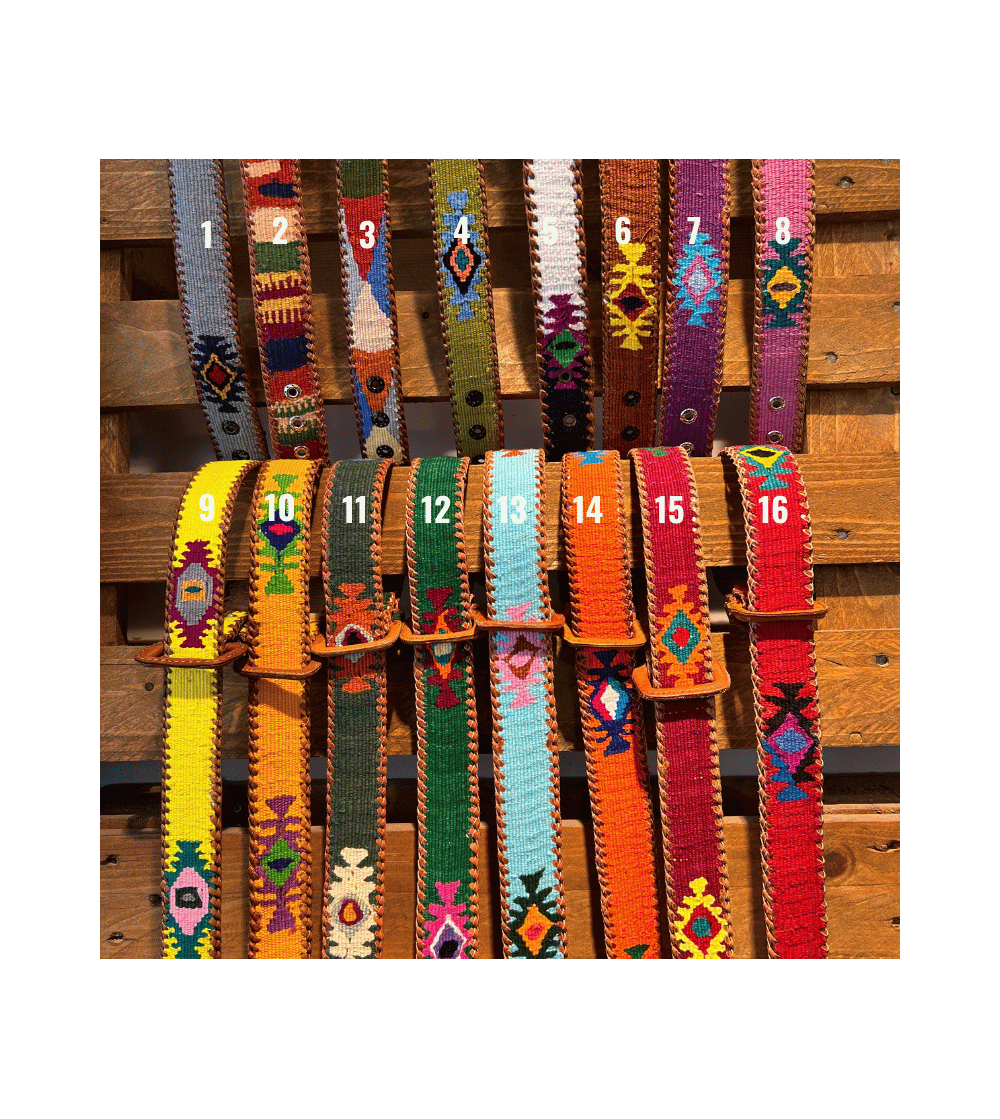 Cinturón KILIM de éstilo étnico Unisex. Tejido tranzado de algodón 100%, elaborado de forma totalmente artesanal, cosido sobre base de cuero y...